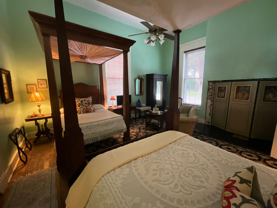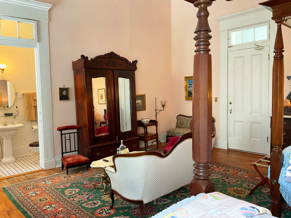 The private bathroom is located outside the room in the adjacent upstairs stairwell. Please contact the Inn to book this suite.